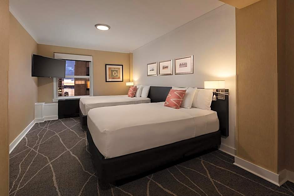 This room features two queen beds. Room amenities include bathrobes, hair dryer, ironing facilities, coffee/tea maker with Seattle’s Best Coffee, 26 inch HD LCD TV, voice mail, and luxurious organic spa amenities.