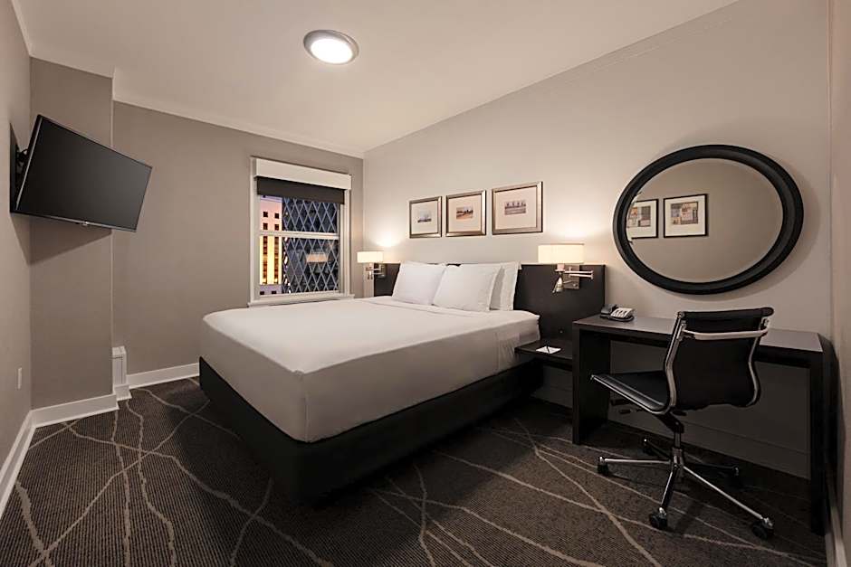This spacious room features a king size pillow top bed with a full size desk and armories. Room amenities include bathrobes, hair dryer, ironing facilities, Keurig coffee maker, 42 inch HD LCD TV, voice mail, and luxurious organic spa amenities.